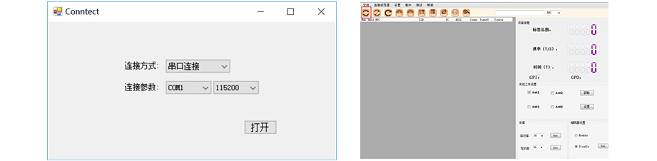 打開ReaderDemo.exe,選擇連接讀寫器-設備連接。